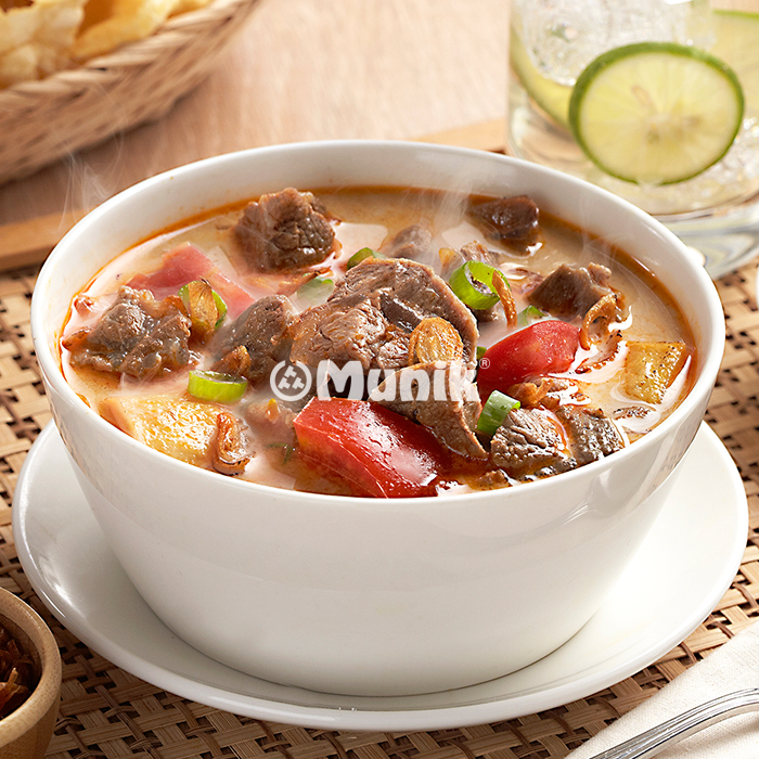 Soto bukan sembarang soto, bumbu Munik Soto Betawi menonjolkan nuansa santan legit dan susu sedap di kuahnya. Dengan hasil sup kuning keemasan yang wangi, bumbu soto betawi dari Sari Munik diracik dengan rempah dan bumbu dapur asli yang serba berkualitas. Hasilnya? Lezat segar dan bikin nagih! Soto bukan sembarang soto, Munik Bumbu Soto Betawi menonjolkan nuansa santan legit dan susu sedap di kuahnya. Dengan hasil sup kuning keemasan yang wangi, Munik Bumbu Soto Betawi asli diracik dengan rempah dan bumbu dapur asli yang serba berkualitas. Hasilnya? Lezat segar dan bikin nagih!